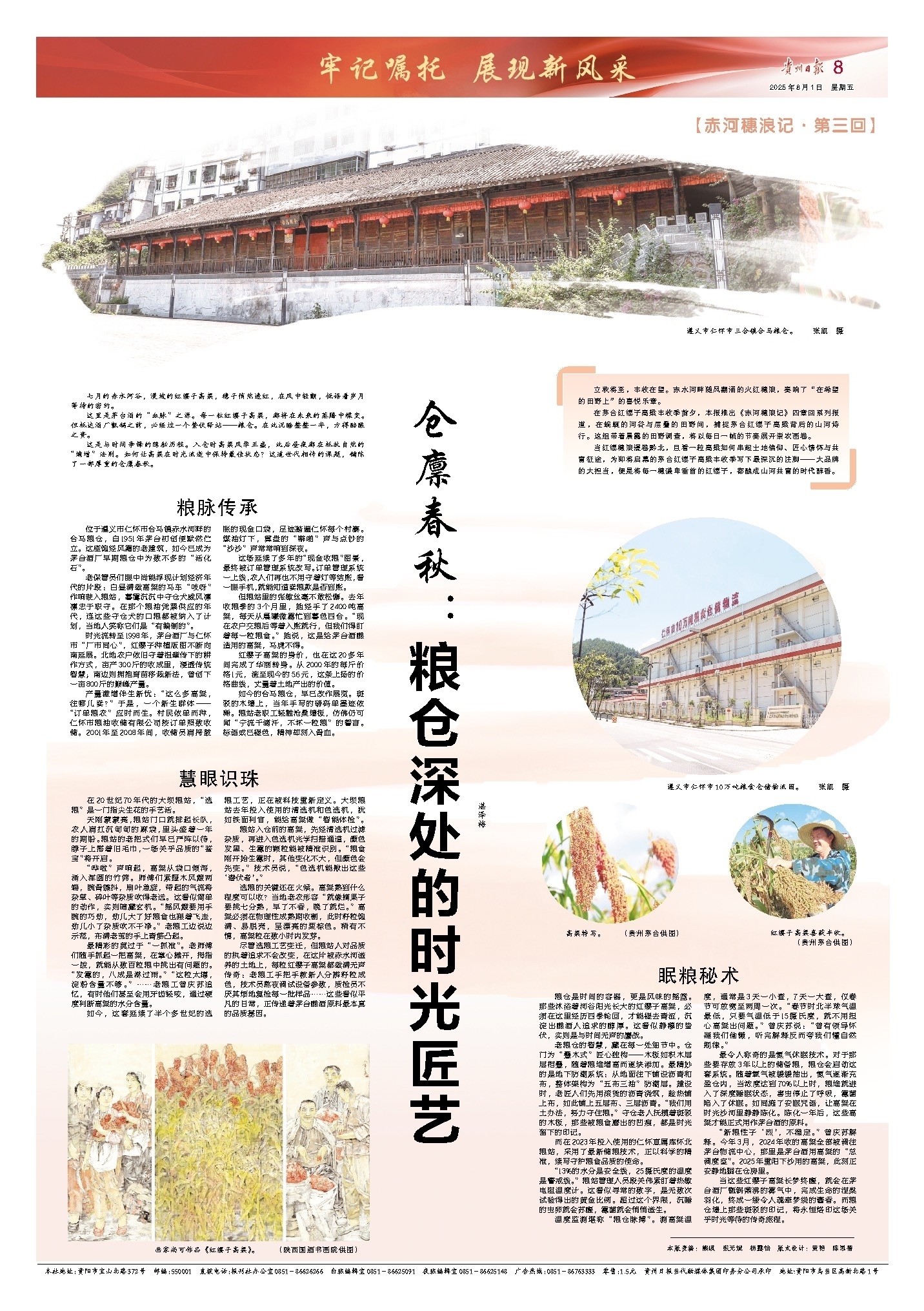 当这些红缨子高粱长梦终醒,就会在茅台酒厂甑锅鼎沸的雾气中,完成生命的涅槃羽化,终成一缕令人魂牵梦绕的酱香。而粮仓墙上那些斑驳的印记,将永恒烙印这场关乎时光等待的传奇旅程。