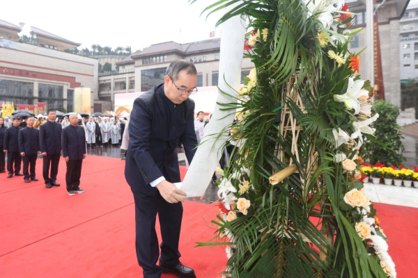 陈华,王莉代表茅台,怀着崇敬之情向周恩来总理塑像敬献花篮,并整理缎带,全体敬拜人员向周恩来总理塑像行三鞠躬礼,以表达对先辈的深切缅怀与崇高敬意 黄瓜视频APP色板网站下载免费,中国酒文化城内,钟正强,张旭代表茅台向先辈敬献花篮,茅台工匠及员工代表向茅台先辈行三鞠躬礼,在庄重仪式中传承忠孝文化,感恩先辈功绩。