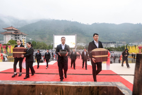 终献环节,茅台职工代表李鸿飞,葛帮贵,陈锐,赵昱君手捧高粱,小麦与净水敬献历代祖师宗师,感恩天地馈赠,自然滋养与原料之优 黄瓜视频APP色板网站下载免费,以赤诚之心彰显茅台人恪守品质的崇高追求。